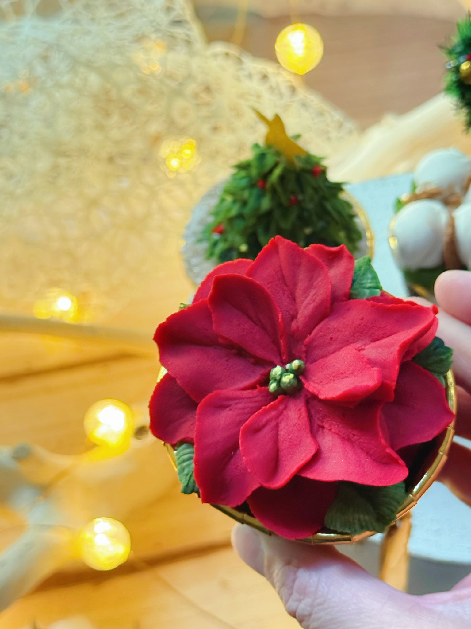 ✨以低糖豆蓉學習製作聖誕花,棉花,松果,玫瑰,聖誕樹,聖誕花環及葉子裱花方法