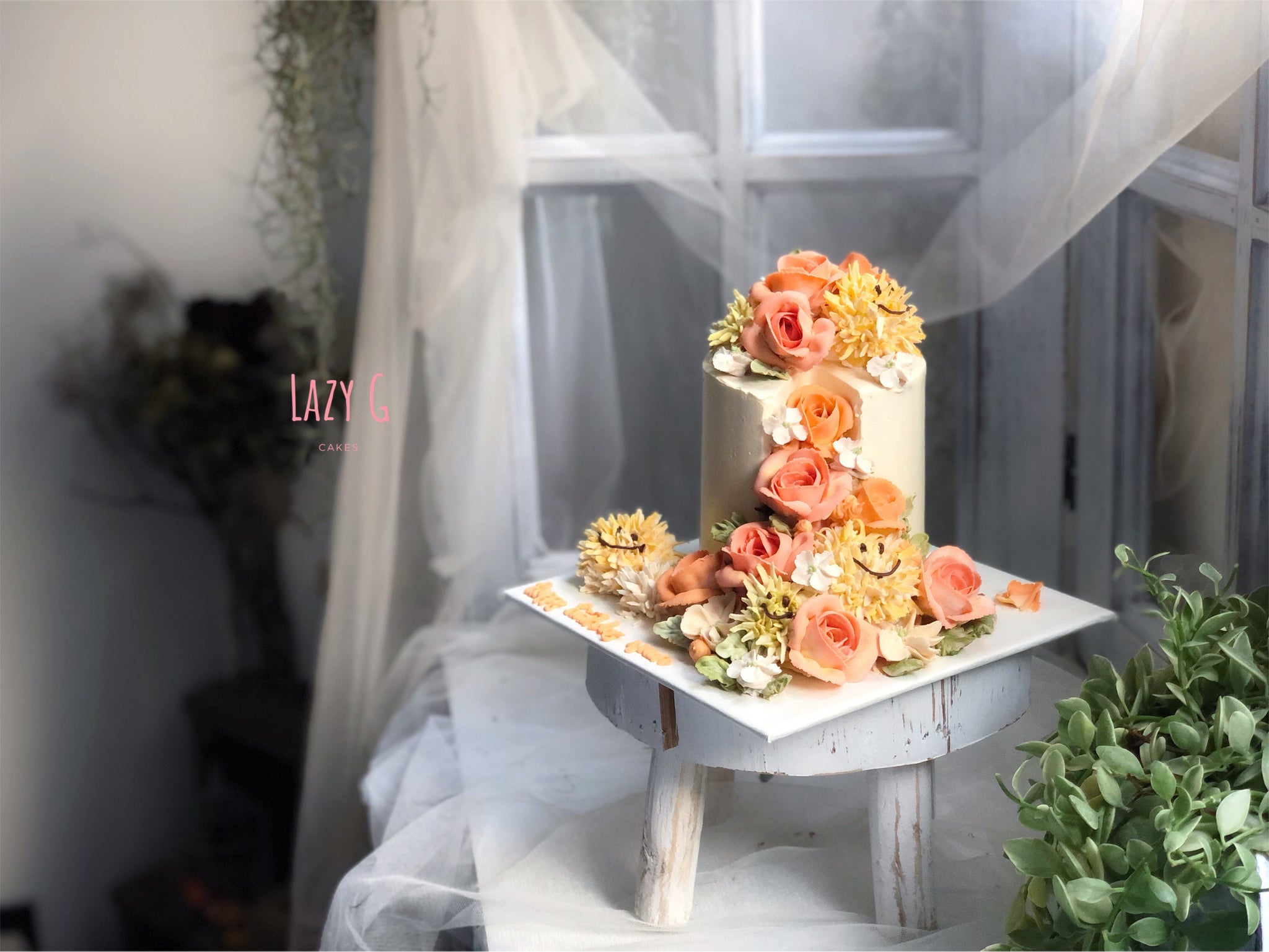 以韓國原裝入口豆蓉裱花,因此豆蓉花未能減甜。豆蓉花顏色方面,客人可以自選心愛的顏色,若有非常獨特的顏色要求,歡迎客人主動提供色版,參考圖片或仔細描述顏色(例如:紫色*可分為深紫色/淺紫色/粉紫色/薰衣草紫色/茄子紫色⋯⋯⋯)讓我盡量為大家製作最心儀的蛋糕。若沒有特別要求的話,LazyG將會為你設計。